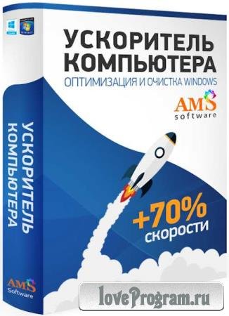 AMS Ускоритель Компьютера — программа очистки системы от лишних файлов, оптимизации работы реестра и управления автозагрузкой. Буквально за 5 минут она проведет полное сканирование вашего компьютера, выявив причины медленного запуска Windows, частых подвисаний, некорректной загрузки сайтов и пр.